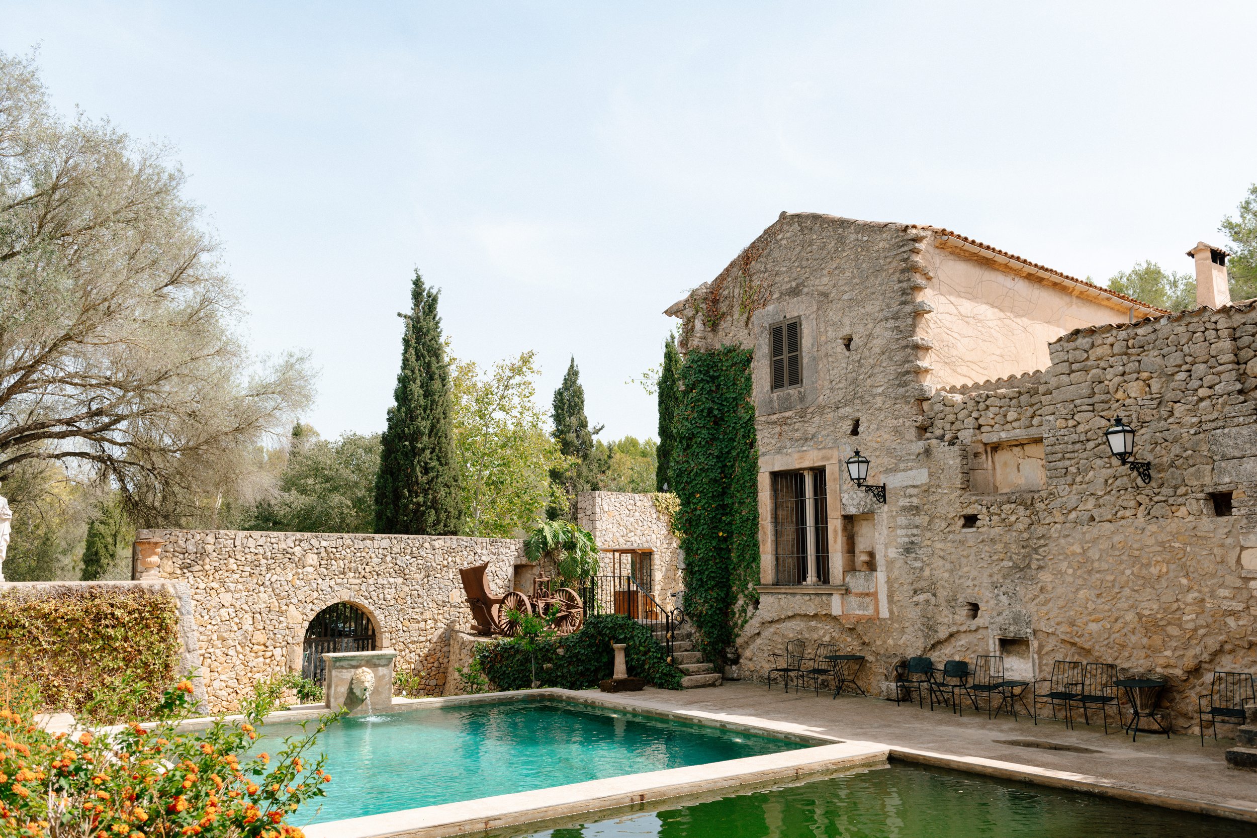 Finca Son Collell is a historic Mallorcan finca wedding venue located in the heart of the island. Surrounded by countryside and traditional gardens, this estate offers several beautiful outdoor spaces for ceremonies, cocktails and elegant al fresco dinners, making it a perfect destination wedding venue in Mallorca.